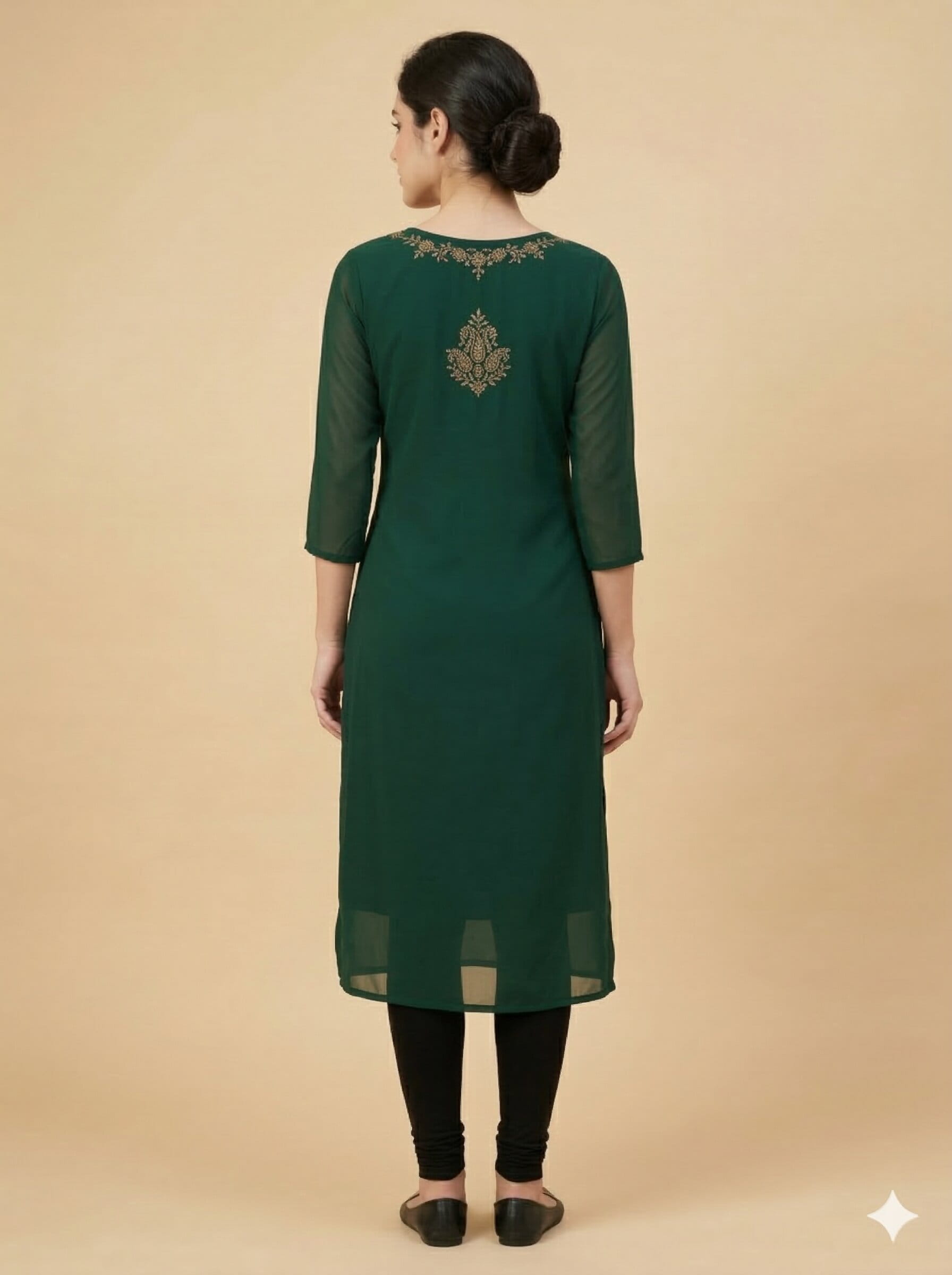 A lush Gold Garden kurta in warm earthy gold, inspired by the serenity of a blooming garden — crafted for women who wear their love of nature gracefully.