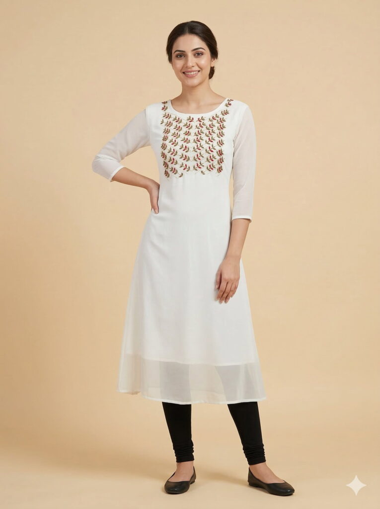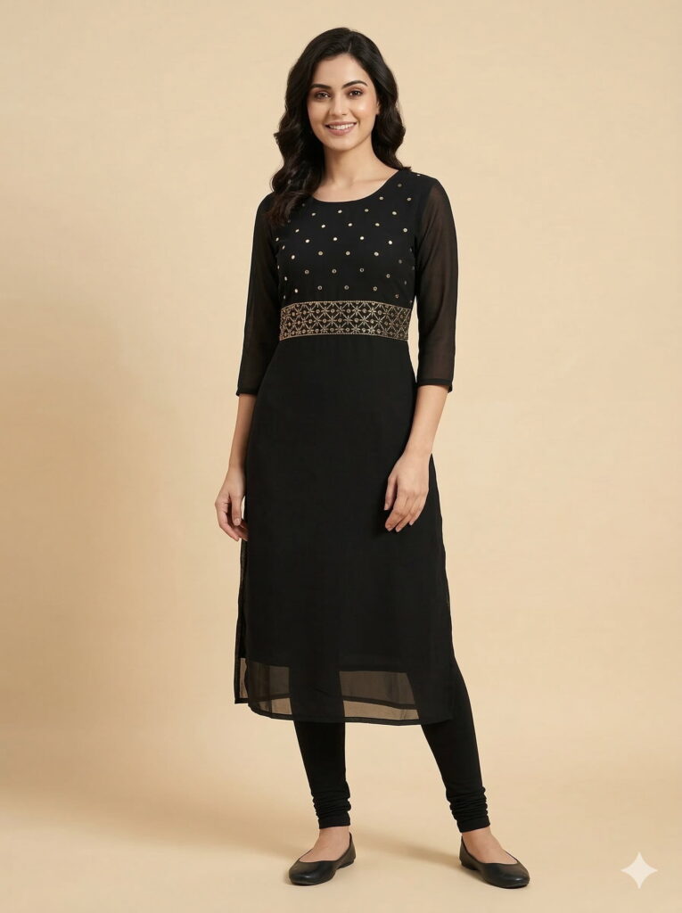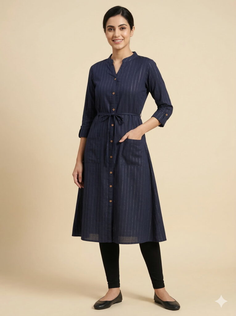 Woven from soft, breathable pure cotton, the Golden Star Kurta is as comfortable as it is stunning. Whether you’re dressed for a festive celebration, an office gathering, or a special outing, this kurta pairs effortlessly with churidars, leggings, or palazzos. Let your style shine with this golden masterpiece of handcrafted elegance.