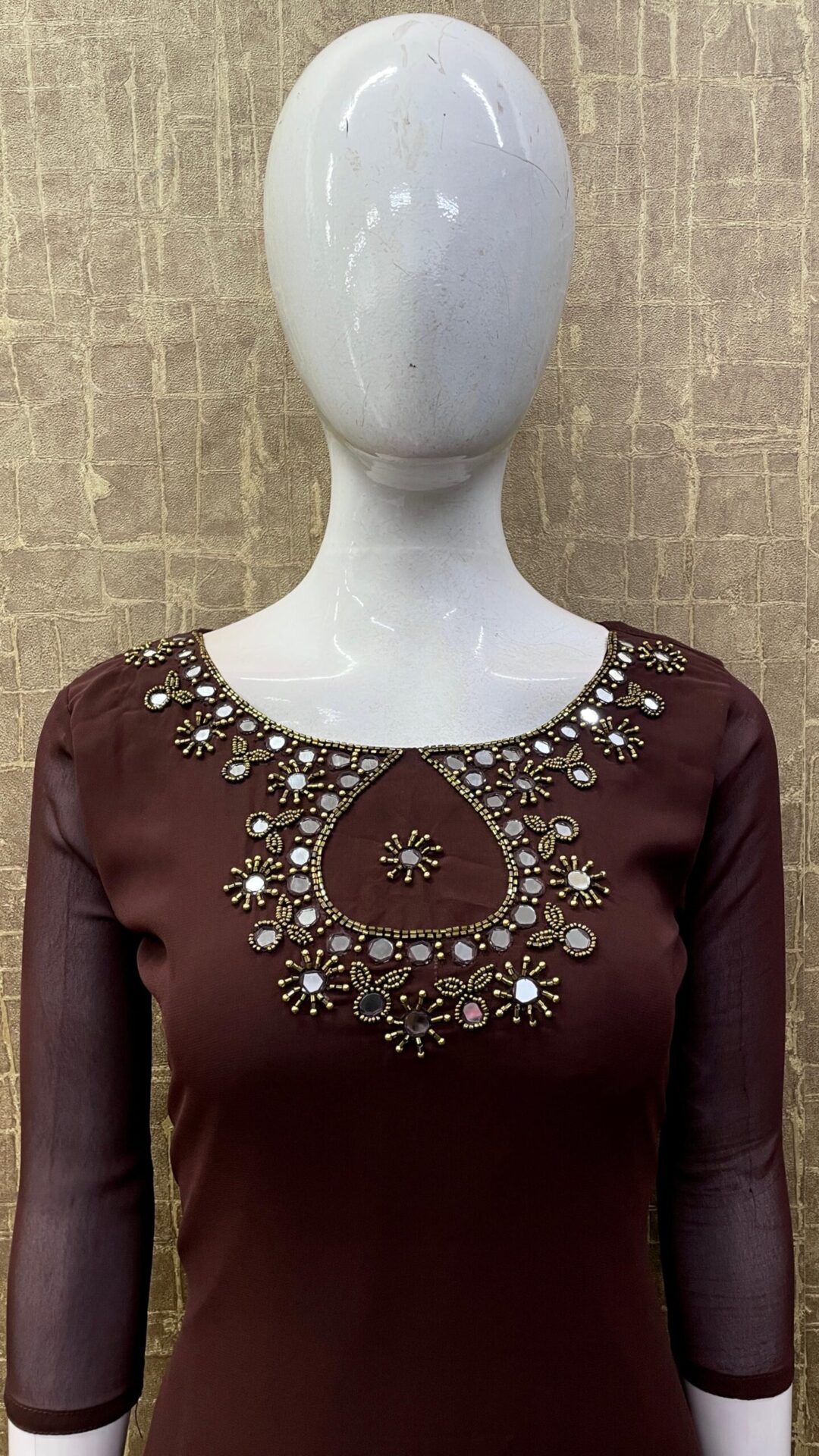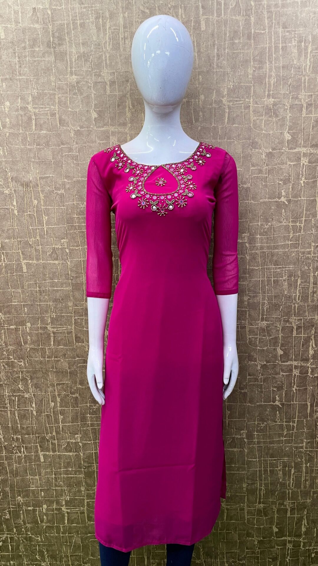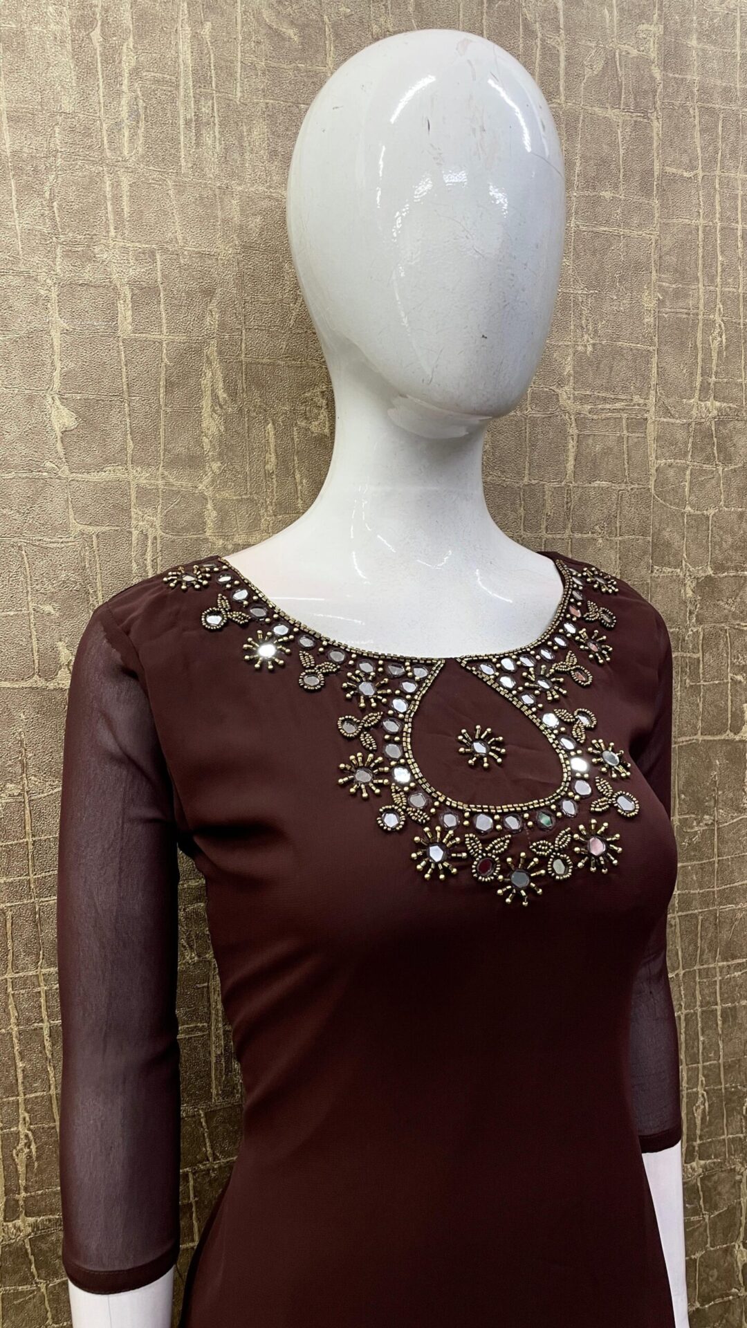 Turn heads with our Slitted Kurti featuring intricate heavy mirror work that sparkles with every move. The stylish side slit adds a modern twist, making it perfect for festive occasions or evening events. Crafted from high-quality fabric, this kurti combines traditional craftsmanship with contemporary design. Elevate your ethnic wardrobe with this stunning piece that blends elegance and edge effortlessly.