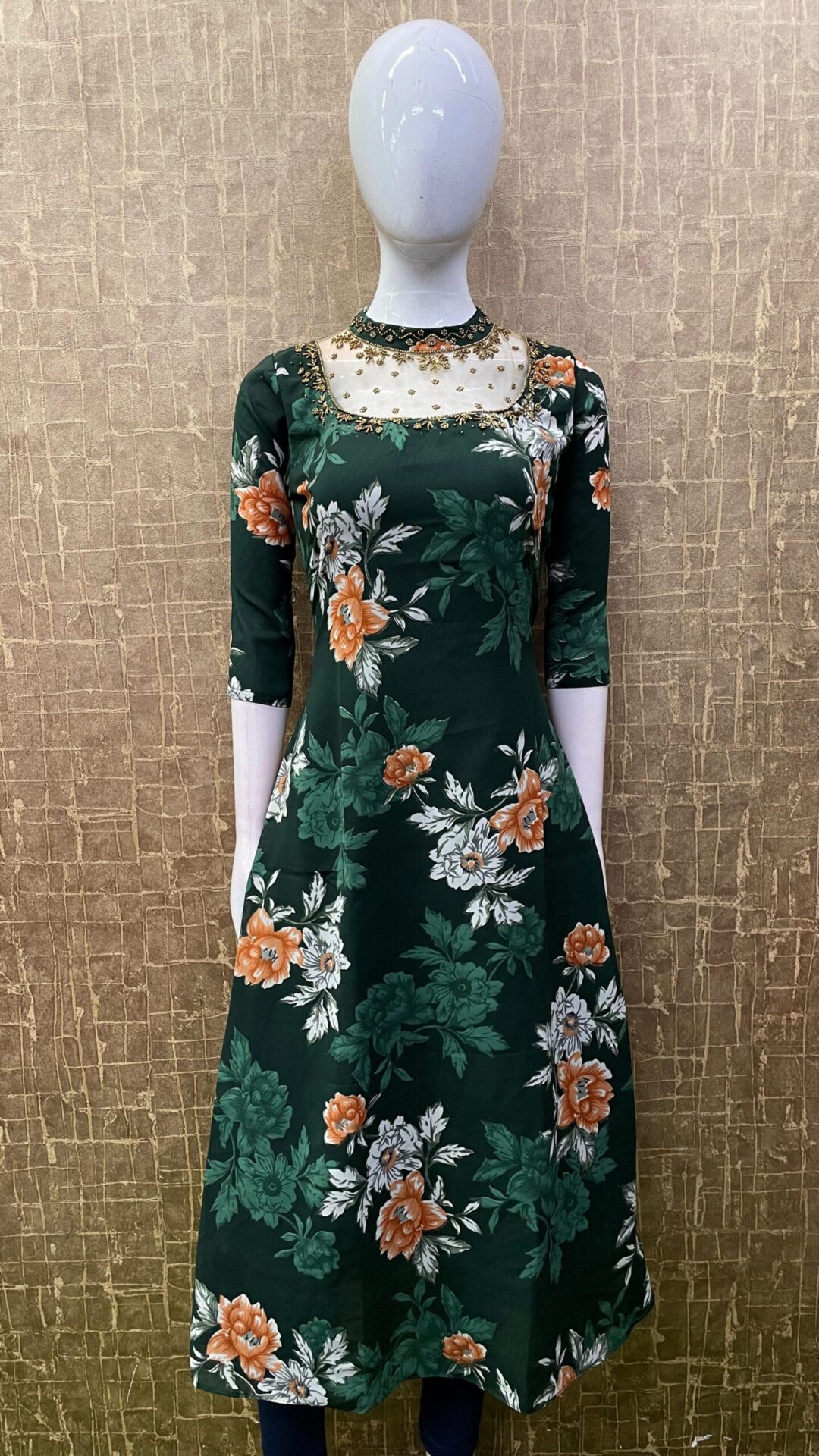 Elevate your style with our Printed Jewelneck A-Line Dress, featuring a flattering silhouette that flares gently from the waist. The elegant jewel neckline adds a touch of sophistication, while the vibrant print brings a burst of color and charm. Perfect for both casual outings and special occasions, this dress offers comfort and timeless elegance. Pair it with minimal accessories for a chic, polished look.