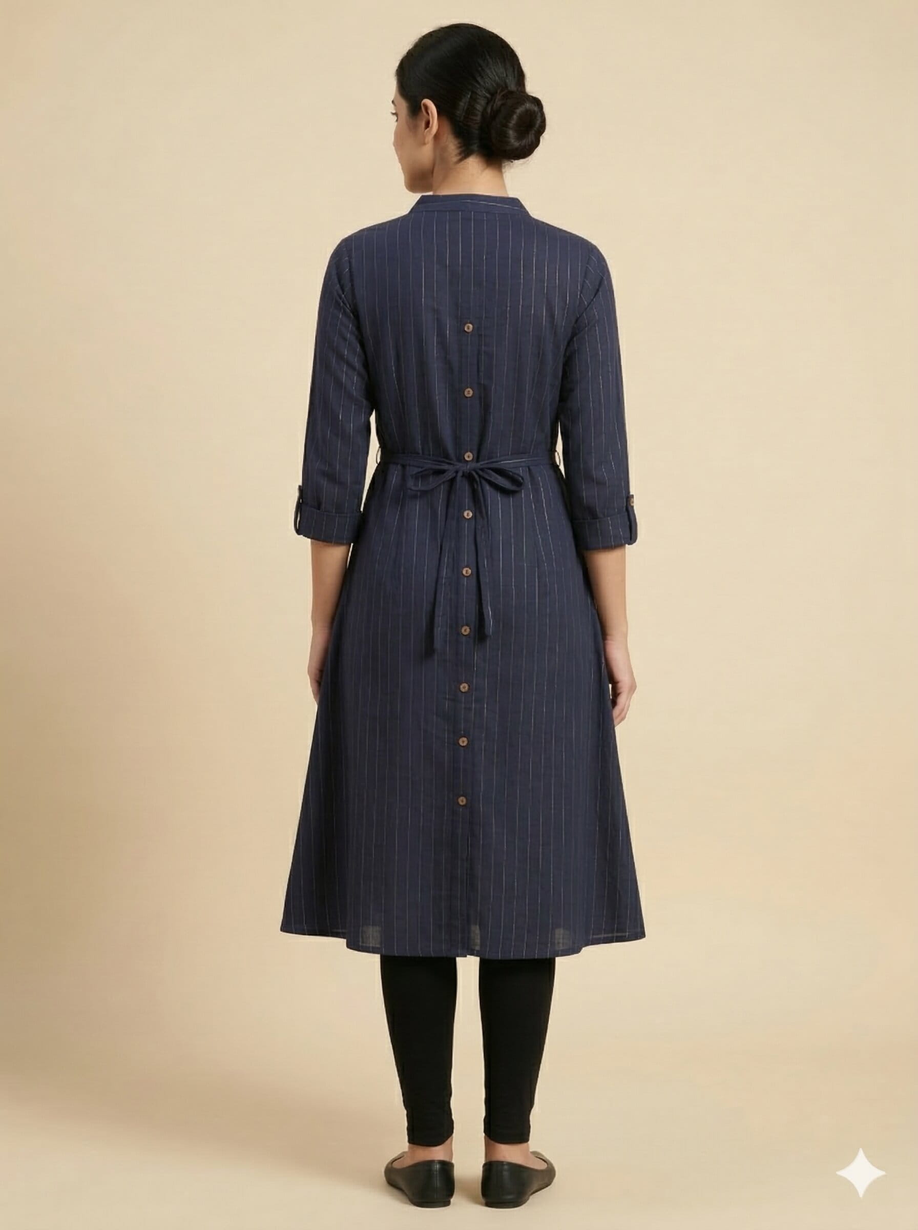 Made from soft, breathable pure cotton, the Silver Stripe Kurta delivers all-day comfort without compromising on style. The clean hemline and streamlined design make it incredibly versatile — pair it with churidars, palazzos, or slim trousers for a look that’s always put-together. A timeless addition for the woman who values understated elegance.